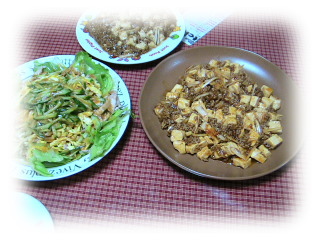 本格派(?)麻婆豆腐と、バンバンジーです。