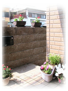 これが我が家の玄関の塀の上にあるお花ですぅ