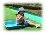 人工芝の上をソリーですべるのは爽快です