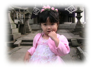 みおが七五三の時に着た私が作ったドレスのボレロ部分だけを利用してます。