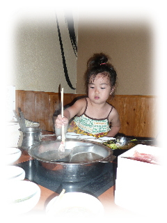 お肉の好きなまおは、ひたすらお肉をしゃぶしゃぶしていました。