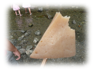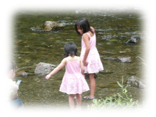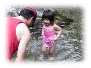 滝の上にのぼっると、有無を言わさず、子供達は水に入ってしまった