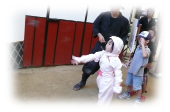 まず、愛間亭に行き、子供達に忍者の衣装を着せました。