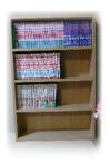 ずっとみおが漫画を本棚の前に平積みしていたの。