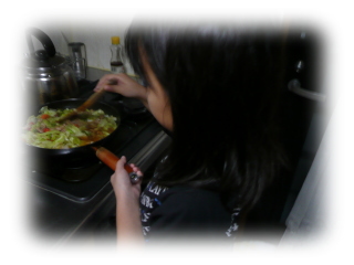 材料を炒めて、味付けもしてもらいました。