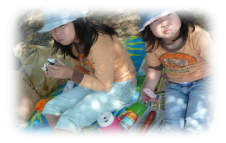 お茶だの、バトミントンだの、ビーチボールだの、ござだの・・・