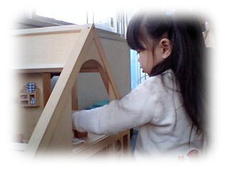 やっぱ、5ヶ月前も一番好きだった、この木製のお人形遊びで今日も遊んでましたよ。