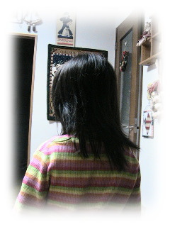 まおは生まれてから一度も、後ろの髪を切ったことがありません