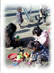 ブランコと、シーソーと滑り台の間の部分をみんなで掘り返して遊んでました。