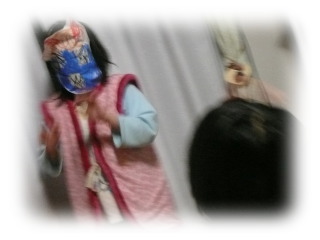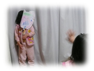 子供達が顔につけているのは、それぞれがつくった鬼のお面です。