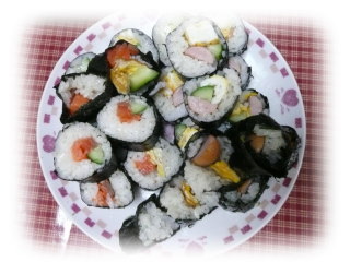 鮭&玉子&きゅうりの巻き寿司と、ウインナー&玉子の巻き寿司です。